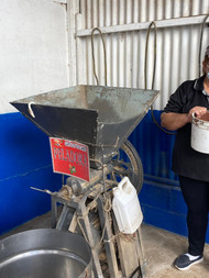 Next it is brought to the chancador machine that removes the fruit from the seed. The skin is used for compost, liquor, beer, or to feed cattle. Nothing is wasted. Then it goes to the Pelling Machine- Peladora- after drying this takes the 4th layer off, the shell. After that it goes to Secadore - coffee drying oven. Then it goes to the roaster, where they bring it to different roasts-light to dark. Light has the most caffeine. The caffeine, which is an oil, that is taken off is sold to companies like coke. It is stored in big bags. Wow!
